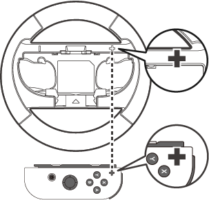 Secure the alignment of the + buttons of the Joy-Con™ (R) and steering wheel.