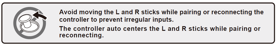 *Pressing the left or right stick while connecting the controller will cause the sticks to not function properly.