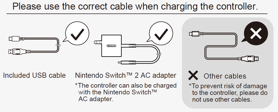 If the controller is not charging when connected to the Nintendo Switch 2, please confirm the below.